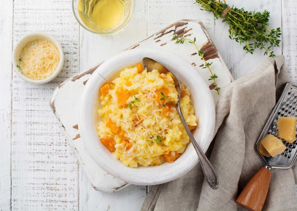 El risotto de calabaza es típico de la gastronomía italiana, donde la calabaza tiene un papel importante. Está presente en multitud de platos, como este arroz meloso con un exquisito toque dulce que, junto con el queso parmesano, hacen una estupenda combinación para el paladar. Una receta fácil, económica y apta para veganos.